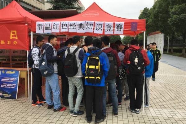 为纪念长征胜利80周年,宣扬红色经典,提醒大学生铭记历史,10月22日中午,yl6809永利官网于一食堂广场开展了以“宣扬红色经典”为主题的近代史知识竞答活动,吸引众多同学参与。